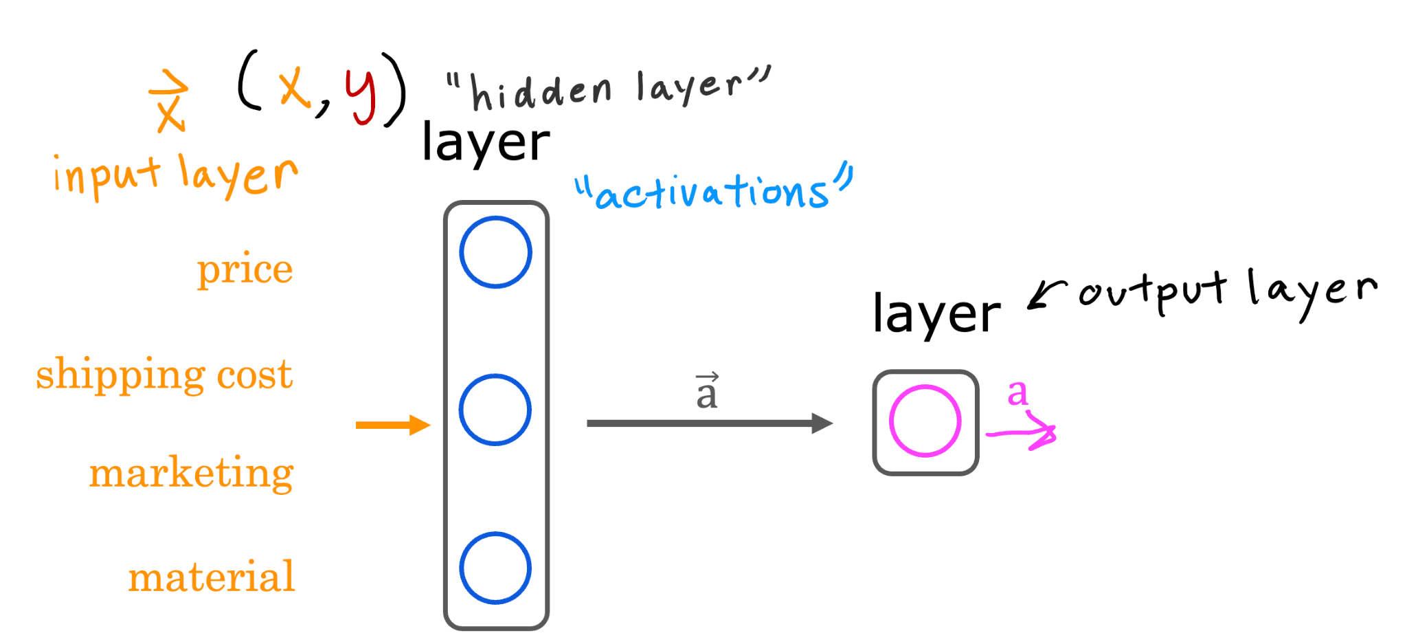 - Hidden Layer: The layers between the input and output. They are "hidden" because we don't see the specific values in the training set; the model determines them.