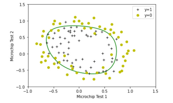return w_in, b_in, J_history, w_historyExpected Output (Regularized Logistic Regression):
